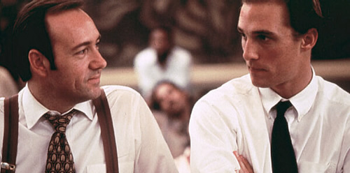 La cinta comienza muy bien con la muestra de dos blancos racistas e ignorantes que se aprovechan nomas porque si de una niña de diez años de color y la dejan al borde de la muerte, la indignación que esto despierta en el pueblo y en nosotros nos mete de lleno en la película y más aun cuando comprendemos que el dolido padre Carl (Samuel L. Jackson, bien) tomara venganza por cuenta propia debido a que los culpables saldrán libres bajo fianza, incluso se lo dice al joven abogado Jake Brigance (Matthew McConaughey) quien ni siquiera intenta detenerlo, después pasa lo indetenible frente a una multitud de testigos y Carl es apresado mientras que Jake decide defenderlo para evitarle la muerte a como de lugar, aparece la joven, bella e inteligente estudiante Ellen (Sandra Bullock) quien le ayuda en todo mientras que el exitoso fiscal Rufus (Kevin Spacey) ve la oportunidad de despegar su carrera política con un caso sencillo.