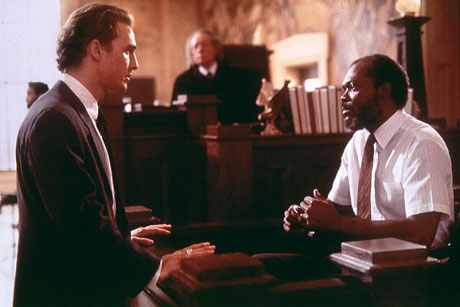 En medio de la saga de batman Joel Schumacher tomaría un receso para hacer una película muy a su estilo, cuando estaba en el apogeo de su carrera entregando "Un Día de Furia" y "El Cliente", y esta cinta se parece justamente a la del niño asustado que es pieza clave de un juicio, también esta basada en una novela de John Grisham pero mientras "El Cliente" funciona en casi todo momento y resulta un entretenimiento interesante esta tiene momentos que simplemente no van y aunque no estoy en contra de su mensaje, después de todo es una situación en la que cualquier opinión es valida, el discurso final me parece tan chafita que antes de llegar a él pensaba que estaba viendo una muy buena cinta y después de el simplemente quedo en entretenimiento sencillo, supongo que es culpa de la fuente original pero como apunte en la reseña anterior, el discurso racista-victimizante resulta tan redundante y lastimero que simplemente no funciona.