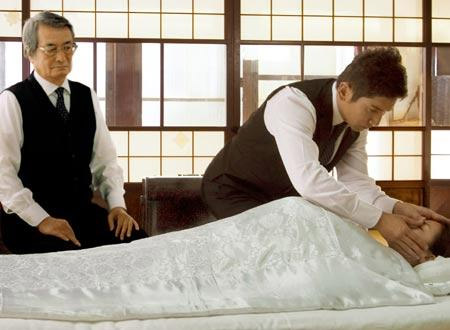 descomposición, la hilarante secuencia del video publicitario, lo mal visto que esta visto su profesión y los problemas que tiene con su mujer debido a ello) gracias a su jefe Shouei Sasaki (Tsutomu Yamazaki) poco a poco comprende que no es simplemente un amortajador sino que su profesión es un arte.Estamos ante una correcta cinta que aunque no es una obra maestra ni mucho menos si es bastante buena y muy entretenida, quiza su principale defecto sea la corrección que nunca se sale de contexto, es decir una pelicula bonita, pero