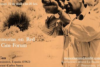 LA CAZA (España 1965). De Carlos Saura; 100 minutos SINOPSISJosé, Paco y Luis, tres hombres de mediana edad, que combatieron en el bando nacional durante la Guerra Civil Española, se reúnen en un pueblo de provincia de Castilla, para cazar conejos. El lugar de la caza coincide con un antiguo campo de batalla en el que los tres combatieron.