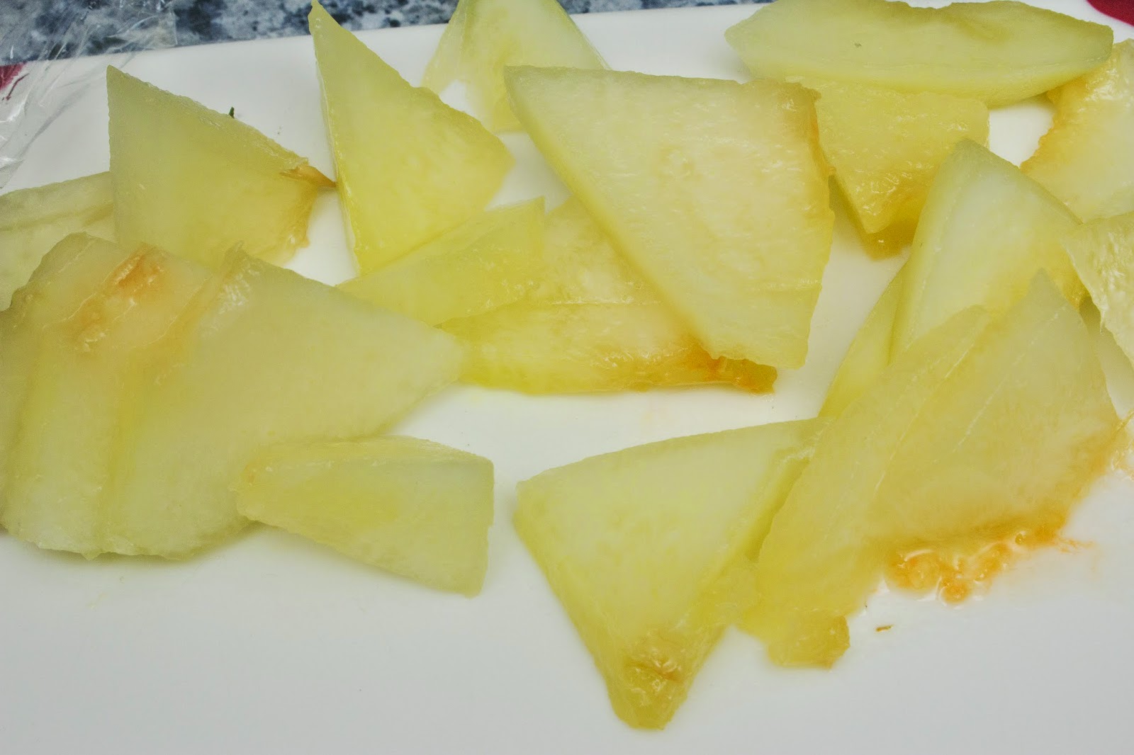 Mientras ve cortando el melón en rodajitas.