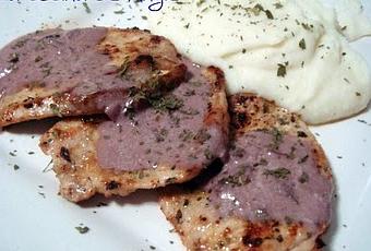 - Dorar los filetes de cinta de lomo salpimentados y servir con la salsa y puré de patata.