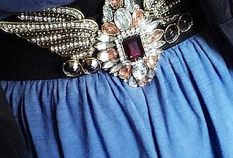 Aprovecho el buen tiempo de esta semana para combinar botines y faldas, que me gusta a mí mucho esto de mezclar estilos y temporadas. Junto a este magnífico cinturón, luzco un no menos magnífico anillo de tenedor, que un buen amigo me regaló hace muchos años y que guardo con mucho cariño. ¡Viva el reciclaje!