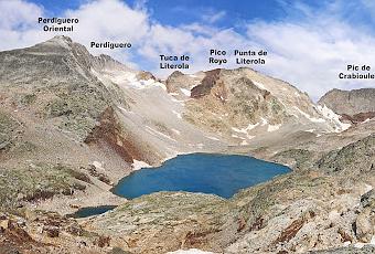 Desde la parte alta vemos este bonito ibón. Las paredes de las tucas de Remuñe, la Estibeta de Literola y de Aigües Passes, separan este ibón del vecino valle de Literola por el que luego descenderemos.