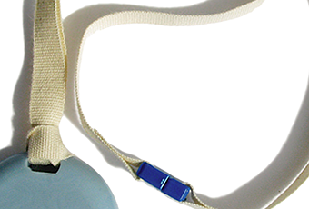 Círculo azul, es un fidget para colgar al cuello , fabricado en en polímero de grado médico con cordones de colores que son 100% de algodón orgánico, no pierden el color y teñidos con ingredientes de origen vegetal. Durable y lavable.