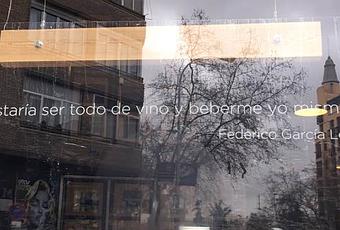 (Al hilo de los días). Paseando por los alrededores de Manuel Becerra, de regreso de la sorprendente exposición que la FNMyT le dedica a Broto (dará que hablar, espero), me topo con esta publicidad vinícola que le atribuye a Lorca esa frase: «Me gustaría ser todo de vino y beberme yo mismo». No sé con qué fundamento. Si fuera cierta, está claro que hasta las mentes más sutiles sufren sus momentos de dura ofuscación. Quien esté libre..., etc.