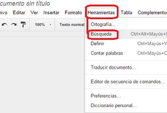 1. Lo primero que debes hacer, es colocarte en el menú sobre "Herramientas" y después hacer clic en Búsqueda. Esto nos permite que se abra un cuadro de búsqueda de Goolge sin necesidad de salir del documento.