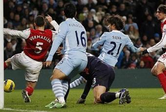 El Arsenal, incómodo en una postura donde no dominaba la dirección del juego, abroquelaba líneas defensivas y sus propias fuerzas ofensivas como Arteta, Gervinho, Walcott y Ramsey debían cubrir los sectores en el que Barry y Yaya Toure manejaban a piacere el mediocampo para alimentar a los de arriba.
