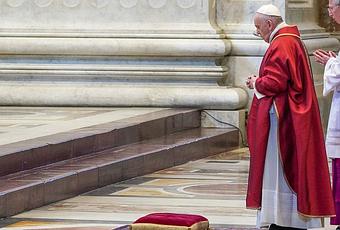 En los años anteriores el papa, de 85 años, se tumbaba completamente sobre una alfombra extendida en el pavimento de la basílica para rezar.