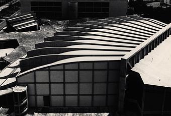 La Ciudad Universitaria se comenzó a construir con el Hospital, en 1945-46, siguiendo un esquema académico propuesto por Villanueva en 1944. Ese enorme edificio, para 1000 camas, apegado a una visión hospitalaria técnica, rígida, derivada al parecer de una asesoría norteamericana de la cual Carlos Raúl Villanueva no logró independizarse, es desangelado, muy poco interesante. Él mismo lo consideró un problema que trató de maquillar con la policromía a lo Max Bill que realizó con Mateo Manaure (1) a fines de la década del cincuenta. Sus patios internos son tristes, demasiado altos sus bordes, y su organización laberíntica. Y si pudieran elogiarse las condiciones climáticas de las salas comunes de hospitalización, originalmente sin aire acondicionado, hay pocas cosas en él que merecen ser citadas. Paralelamente se comenzó la zona médica en la cual comenzó a expresarse una visión de la arquitectura más asociada al lenguaje moderno a través de la arquitectura brasileña, que inicia una etapa que habría de justificar el valor universal de Villanueva como arquitecto. El Pabellón del Brasil en la Feria de Nueva York de 1939, de Lucio Costa-Oscar Niemeyer es una referencia que influyó algunos de los edificios, como también ocurrió con los de Pampulha (1943) de Oscar Niemeyer, en el caso del comedor universitario en el otro extremo del conjunto, construido para uso de los atletas de los Juegos Bolivarianos de 1951. Pero es en los estadios de la zona deportiva, también construidos para los juegos, donde hay una adhesión radical a la modernidad. Focalizada en la figura y obra de Le Corbusier, a quien Villanueva admiró y siguió en términos doctrinarios, y enriquecida por muchas otras fuentes. Ese salto radical desde el academicismo, lo lleva a romper con el esquema ordenador inicial, insertando casi como un obstáculo el conjunto del Aula Magna, y desarrollando después las Facultades (de las cuales sólo Ingeniería se había avanzado parcialmente), de un modo muy libre y ya sin sujeción alguna al Plan Maestro original.