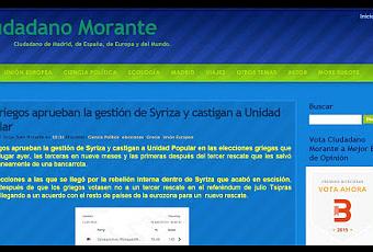 Para poder votar en los Premios Bitácoras 2015 solo necesitas estar registrado en Bitacoras.com o vincular con tu cuenta de Facebook o Twitter. Puedes votar directamente pinchando aquío escribiendo www.ciudadanomorante.euen Mejor Blog de Opinión en la página de votación. Para que tu voto quede registrado debes pinchar abajo en la pestaña que pone “Votar”.