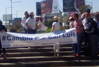 SLP.- Este pasado domingo 18 de febrero, varios ciudadanos e integrantes de la iniciativa #CambioPorSanLuis se manifestaron a las afueras de la casa de Gobierno para solicitar a Juan Manuel Carreras acciones en contra de la violencia y la inseguridad que se vive en el estado.