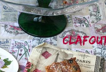 El clafoutis es un pastel francés que se hace con fruta fresca.Al parecer el original es de cerezas.Dicen los franceses que se debe poner la cereza sin deshuesar para que el jugo de la cereza cortada no humedezca el pastel pero imaginad la incomodidad a la hora de comerlo.Hay que armarse con un poquito de paciencia para cortar la cereza a la mitad y sacar el hueso...o comprarse un deshuesador de cerezas.En la red hay muchas recetas diferentes; a mi ésta me parece la más cercana a la original.