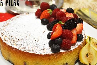 - Dejamos enfriar por completo antes de desmoldar. Una vez frío, lo servimos espolvoreado con azúcar glas y lo decoramos con frutas frescas.