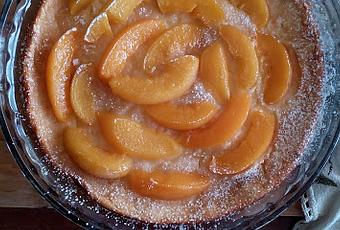 Todas las recetas de Julia son lo máximo, pero para comenzar el año pasito a pasito he elegido una muy simple pero por supuesto deliciosa receta tomada de su libro Mastering the Art of French Cooking vol1. Es una Clafoutis de Melocotones, tarta francesa (por supuesto) tan suave y cremosa que es un deleite en cada bocado.