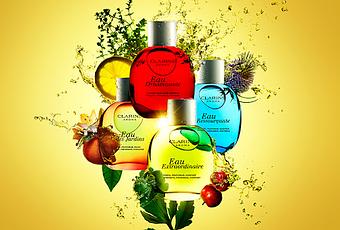 En 1987, los Laboratorios Clarins innovan con la idea pionera combinando el perfume y las propiedades de los aceites esenciales en un mismo frasco, creando la primera Agua de Tratamiento: Eau Dynamisante, a la vez perfume tonificante y acción tratante, esencial para el bienestar y el confort de la piel. Agua de tratamiento a la que se sumarán nuevas valientes olfativas y tratamientos para el cuerpo, de los que los más recientes es Eau Extraordinaire, creado en 2022. Aguas de tratamiento y 4 emociones: Energía, alegría, serenidad y fuerza interior.