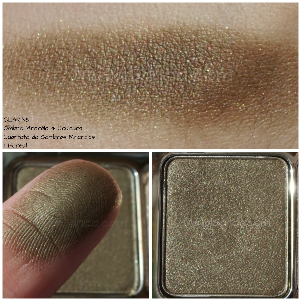 La primera sombra del cuarteto de sombras minerales Forest de CLARINS es un color verde khaki de acabado metalizado.Tiene además unas partículas doradas diminutas que le aportan mucha luminosidad al color.