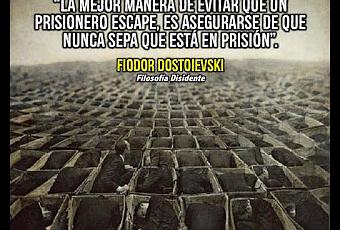 No somos esclavos por lo que no tenemos sino por lo que desconocemos, si algo esclaviza a la humanidad es la ignorancia, pero peor aun lo que mas esclaviza a toda persona es el temor a lo desconocido, la ignorancia es un gran enemigo pero este no es nada a comparación del temor a lo desconocido, este es el mayor de nuestros males.La mejor forma de tener controlados a los prisioneros es que no sepan que están en una prisión, esto es verdadero, por eso en un mundo lleno de personas que buscan sacar provecho de otras lo que sobra son engaños, pero al final de cuentas nadie es responsable o tiene el mérito por nuestra falta de libertades, somos nosotros mismos los que les permitimos a otras personas privarnos de nuestra libertad, somos nosotros los que decidimos en última instancia estar en una prisión.Nuestros miedos son los que nos mantienen prisioneros, las cadenas mas grandes no son las que otros nos imponen sino nuestras limitaciones mentales, quien se queja de la oscura naturaleza del mundo pero no auto-reflexiona sobre lo que tienen que mejorar en su ser no es mas que un pendejo con una actitud victimista, un pendejo que se excusa en lo que hacen los demas para no asumir las responsabilidades de su vida, un pendejo que se queja de ser esclavo pero que no hace nada para cambiar esa realidad.El mundo es una porqueria pero lo es no tanto por quienes crean engaños, sino por aquellas personas que buscan falsas esperanzas para huir de su realidad, quienes crean engaños y prisiones son demandados por una sociedad ingenua, ignorante y con miedo a lo desconocido; El dia que la mayoría de las personas aprendan a conocerse a si mismas y a dejar aun lado el temor por lo desconoció, ese día poco a poco se acabarán las prisiones y los engaños, pero mientras las personas teman a la libertad y a todo lo desconocido, reinaran aquellos que viven de engañar y esclavizar masas.