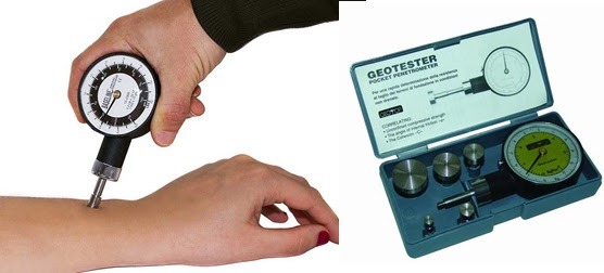 Por cierto el dolorímetro existe en medicina y se usa para intentar determinar de forma objetiva los umbrales de dolor. Es interesante ver que se parece mucho a nuestros penetrómetros de mano, tan utilizados en geotecnia, abajo os pongo dos imágenes de ambos aparatos.