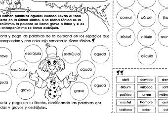 -Recorta y pega en tu libreta, clasificando las palabras en: agudas, graves y esdrújulas.