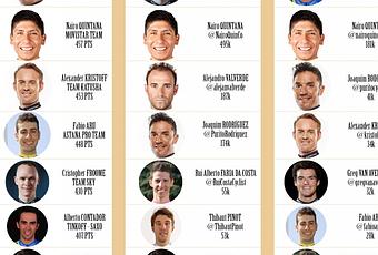 Y Fabio Aru, ganador de la vuelta de este año, ¿por qué está tan abajo en el ranking Twitter e Instagram? Mi teoría es que debido a su reciente explosión (en comparación con los otros dos gallos) todavía es pronto para alcanzar las cifras tan elevadas de sus competidores. Pero, con el tiempo, es probable que vaya escalando posiciones.