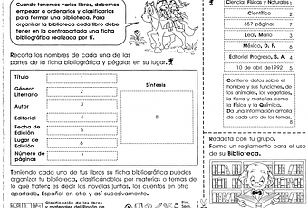 - Recorta los nombres de cada una de las partes de la ficha bibliográfica y pégalas en su lugar