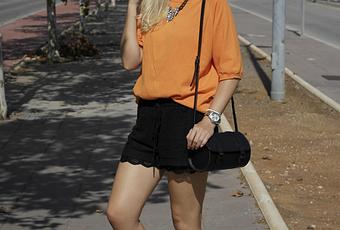 Este tipo de looks no es de mis favoritos, ya que sabéis que adoro el estilo casual e incluso con un toque grunge para mi día a día. Pero por motivos de trabajo últimamente me gusta vestirme un poco más arreglada, eso sí, siempre fiel a mi estilo. Hacer este tipo de cosas me encanta ya que así me propongo combinar varios estilos. Os enseño los pendientes de perlas que veréis muchísimo éste invierno, yo no pude evitar llevármelos también a casa.Jersey naranja que aporta ese toque de color perfecto para entretiempo y short con encaje, el punto classy lo añaden los mocasines. Feliz semana bloggers! ♥