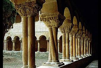 Claustro del monasterio de Santo Domingo de SilosObra maestra de la escultura románica española, destaca por sus capiteles decorados y los grandes relieves que adornan los pilares de las esquinas.