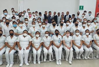 Santos Ontiveros, dijo que –“esto es una misión que cada uno tiene para tener pacientes, usuarios, con mejor calidad de vida. Ustedes se deben a ustedes mismos, pero desde el momento que utilizan estos uniformes, también se deben a sus pacientes. Sigan trabajando, sigan estudiando nunca dejen de hacerlo. Este es el inicio no el final”.