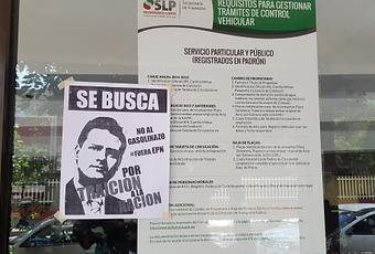 San Luis Potosí. – La mañana de este lunes se congregaron cerca de 50 personas en la explanada del Teatro de la Paz para expresar su descontento contra el alza del precio de la gasolina.