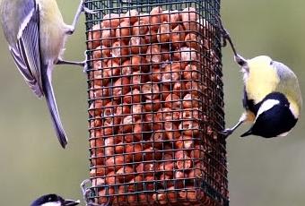 2) Preferentemente, procura que el emplazamiento elegido también sea un lugar soleado, intentando que en los días despejados aproveche el máximo de horas de sol. Esto implica que, si mantienes los comederos todo el año, durante primavera y verano tendrás que mover los comederos buscando el efecto contrario: la menor insolación. Afortunadamente, en la mayoría de ocasiones es sencillo encontrar ambas posiciones en un espacio relativamente pequeño.3) En la época invernal las aves tienen mayores necesidades metabólicas, por lo que es importante ofrecer alimentos con alto contenido calórico, como los cacahuetes, las pipas negras, las pipas iregui, las semillas de negrillo, así como las mezclas que las contienen. En estas fechas también son particularmente recomendables las bolas y pasteles de sebo, que son muy apreciados por las aves y aportan además mucha energía.