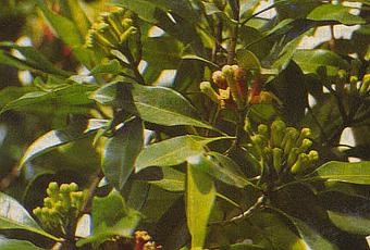 Arbol peremne de 10 metros de altura; el tronco tiene corteza amarilla parduzca. Las hojas son ovales y terminadas en punta con un pecíolo muy largo. Las flores están reunidas en racimos y son muy olorosas. Lo que nosotros llamamos clavo de olor es la flor, que aún no se ha abierto del todo, seca.