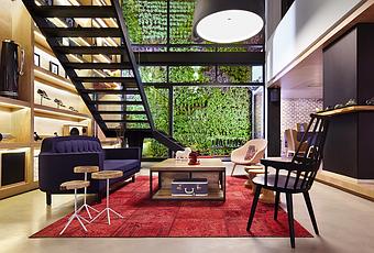 El hotel fue diseñado por Plan B Arquitectos en colaboración con Perceptual Studio y destaca por su interiorismo de diseño, con elementos bastante llamativos, como la "lámpara taza" del hall o la iluminación del restaurante, con esas lámparas que nos recuerdan a la Potence de Prouvè.