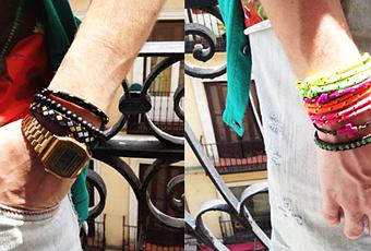 Pulseras 'cabo' en colores fluorescentes. Pulsera con cruz fucsia, de Anuka Jurado. Pulsera con jade, de Pintor de Gala. "At the Copa (Co!) Copacabana (Copacabana) The hottest spot north of Havana (here!) At the Copa (Co!) Copacabana, Music and passion were always the fashion, at the Copa... They fell in love".
