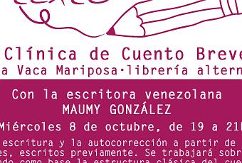 Corrige tu texto | Clínica de cuento breveCoordina:Maumy GonzálezLibrería La Vaca Mariposa(Zona Palermo)Único encuentro: Miércoles, 8 de octubre, de 19 a 21hValor: AR$ 180. Miembros del Club del Lector LVM: AR$ 150.(Cupos limitados)