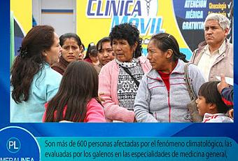 Son más de 600 personas afectadas por el fenómeno climatológico, las evaluadas por los galenos en las especialidades de medicina general, ginecología, pediatría, nutrición, odontología, salud mental, entre otras especialidades.De otro lado, los especialistas de la Dirección Regional de Salud procedieron a desplegar las faenas de fumigación de cada uno de los hogares, con la finalidad de erradicar el zancudo Aedes aegypti para evitar la transmisión de enfermedades como el dengue, zika y chikungunya.