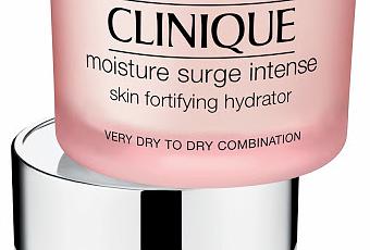 Clinique presenta Moisture Surge Intense Skin Fortifying Hydrator, para cutis más secos y delicados que requieran una hidratación intensa. Esta crema en forma de gel fue creada para satisfacer las necesidades de quienes buscan los beneficios de una elevada hidratación ofreciéndoles un efecto doble –hidratación máxima, además de una tecnología para reparar la barrera de humedad del cutis.