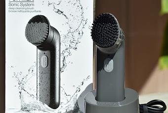 Hace unos meses tenia ganas de cambiar mi cepillo facial que ya estaba muy viejito..pobrecito(estaba usando el de Bellissima...hay un post sobre el ACA).Así que busque informaciones sobre varios y termine decidiendome por el Sonic System Deep Cleansing Brush de Clinique.Todavía acá en Argentina este producto no estaba a la venta ( desde mediados de Marzo empezó a ser vendido) y termine comprandolo en el FREE SHOP de Ezeiza.El problema vino cuando por error agarre el paquete pague y abrí ..fue cuando me de cuenta que era hecho para los hombres ..es que el color me llamo la atención por que era Gris y me pareció super elegante.Listo..me quedo con este ..servirá para mi y para Sebastián..Pero vamos hablar del cepillo ..