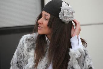 El culpable, esta preciosidad de sombrero que me tiene locamente enamorada. Es de la diseñadora Monica Luna , una gran artista que hace auténticas preciosidades. Tuve el placer de conocerla en el I Jornadas de Diseño y Moda Art Street de Avilés, donde me encargué de presentar el desfile, entre las diseñadoras estaba ella, fue imposible no fijarse en sus complementos ya que desprenden elegancia, romanticismo y mucha feminidad. Así es que cuando vi este sombrero me encantó, no puede ser más de mí estilo. Así que nada más me lo probé se me vino a la cabeza el abrigo, ya que al tener la flor en gris casan de maravilla.