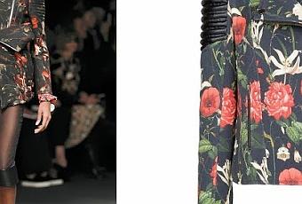El clon de hoy es una cazadora biker que mezcla un estampado floral con detalles de piel acolchados en los hombros y cremallera en la parte delantera.