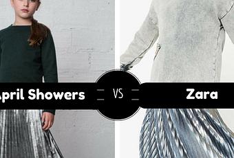 Sin dudarlo la falda de April Showers tiene una calidad bastante superior a la que nos propone Zara, su precio es de 70 € frente a los 19,95€ de la de Zara, y la verdad yo en esta ocasión he comprado la más barata pensando que es una tendencia que en moda infantil no tengo claro que vaya a quedarse entre nosotros demasiado tiempo, y además sólo se la he comprado a mi hija de 12 años ya que la falda para mi gusto es para una niña algo más mayor por tema de largo.