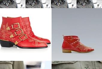 ¡Buenos días! Y ya mitad de semana. Hoy os traigo un post distinto, donde os enseño algunos de los "clones" de la temporada. Las firmas low cost están al acecho de lo que serán los must haves de la próxima temporada, para traérnoslos a las tiendas. El de arriba es el clon de las ya famosas botas de Chlóe, que las encpntraremos tambien en negro, y son de Zara.