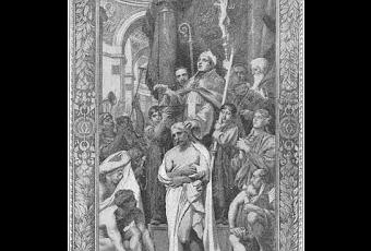Página 68Clovis se había convertido muy serio y ferviente. Un día, el obispo de Reims, al instruirlo en las doctrinas del cristianismo, describió la muerte de Cristo. Cuando el obispo procedió, Clovis se emocionó mucho y por fin saltó de su asiento y exclamó:
