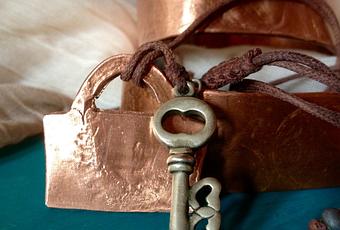 Para el colgante cogí un trocito de tubo más ancho y le introduje uno más estrecho en forma de cruz y empecé a darle golpes.Luego a lijarlo,pulirlo ,limpiarlo y barniz.Como vereis no lo pulí del todo porque me gusta que se vean las distintas tonalidades.