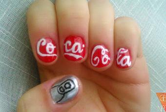Es inspirado en una Coca-cola, como habéis visto.En el pulgar he dibujado con base plateada, la chapita y el circulo que al levantar la chapa se abre.