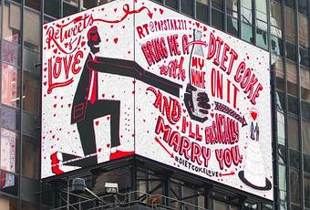 Bajo el nombre "Retweets of love" ("Retuits de amor"), la campaña creada por Droga5 cuenta con la ayuda de los ilustradores Erik Marinovich, Marta Cerdà Alimbau y Jeff Rogers. La acción empezó la semana pasada con tres tuits de fans de Texas, Oregon y Virginia, que fueron "retuiteados" en una pantalla gigante de Times Square para que pudieran verlos todo el mundo.