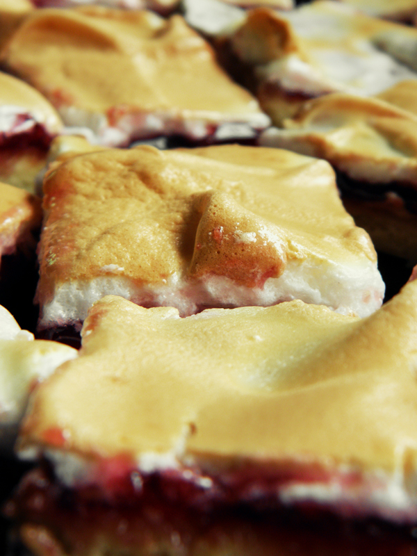 A continuación,echamos el merengue por encima y cubrimos toda la coca con ella. Volvemos a meterla en el horno a 180ºC,hasta que el merengue esté dorado.