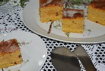 Forramos la llanda o el molde que vayamos a utilizar con papel de horno y vertemos toda la masa de calabaza. En un bol, mezclamos un poco de azúcar y de canela y espolvorea por encima de la masa cubriéndola toda.