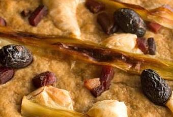 Ya os comentaba hace unos días que hemos probado en casa Calçots con denominación de origen Valls gracias a calsots.com. Y es que con calçots se pueden hacer muchos platos. ¿Que no se os ocurren ideas? En la barra lateral del blog tenéis un enlace al libro "Sorprende con calçots". Esta coca está sacada de allí. Y es deliciosa!!.