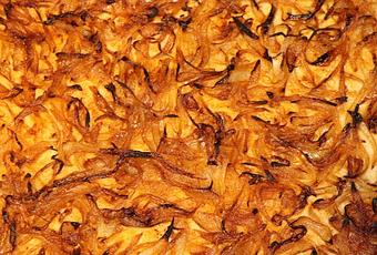 En una sartén pochar las cebollas en juliana con un chorrro de aceite, agregarle sal y pimienta al gusto.